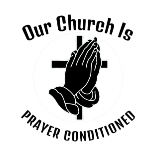 Our Church is Prayer-Conditioned. Black lettering. Christian design. Christian humor take on air conditioning in a church. Christian design for any product. Great gift idea for your Christian family, friends, coworkers.