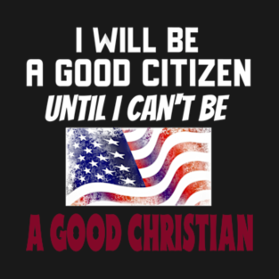 I Will Be a Good Citizen Until I Can't Be a Good Christian. White lettering. Christian design for almost any color shirt. Great for every day or a gift idea for your Christian friends, family or co-workers.